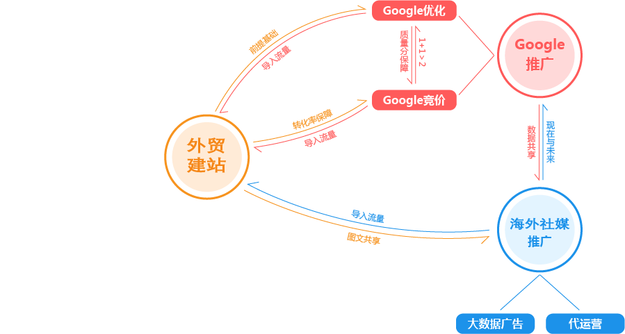 连云港外贸推广公司为您提供全面的“整合”方案,为您的企业提供全生命周期的精细化服务和咨询。为此,我们搭建了从广告投放到SEO优化,从内容运营到网站开发,从品牌策划到电商运营的近100人的团队,组成了一家集全球渠道资源、人才资源、技术资源为一体的数字营销机构,为您一站式解决出海难题,实现品牌全球推广!
